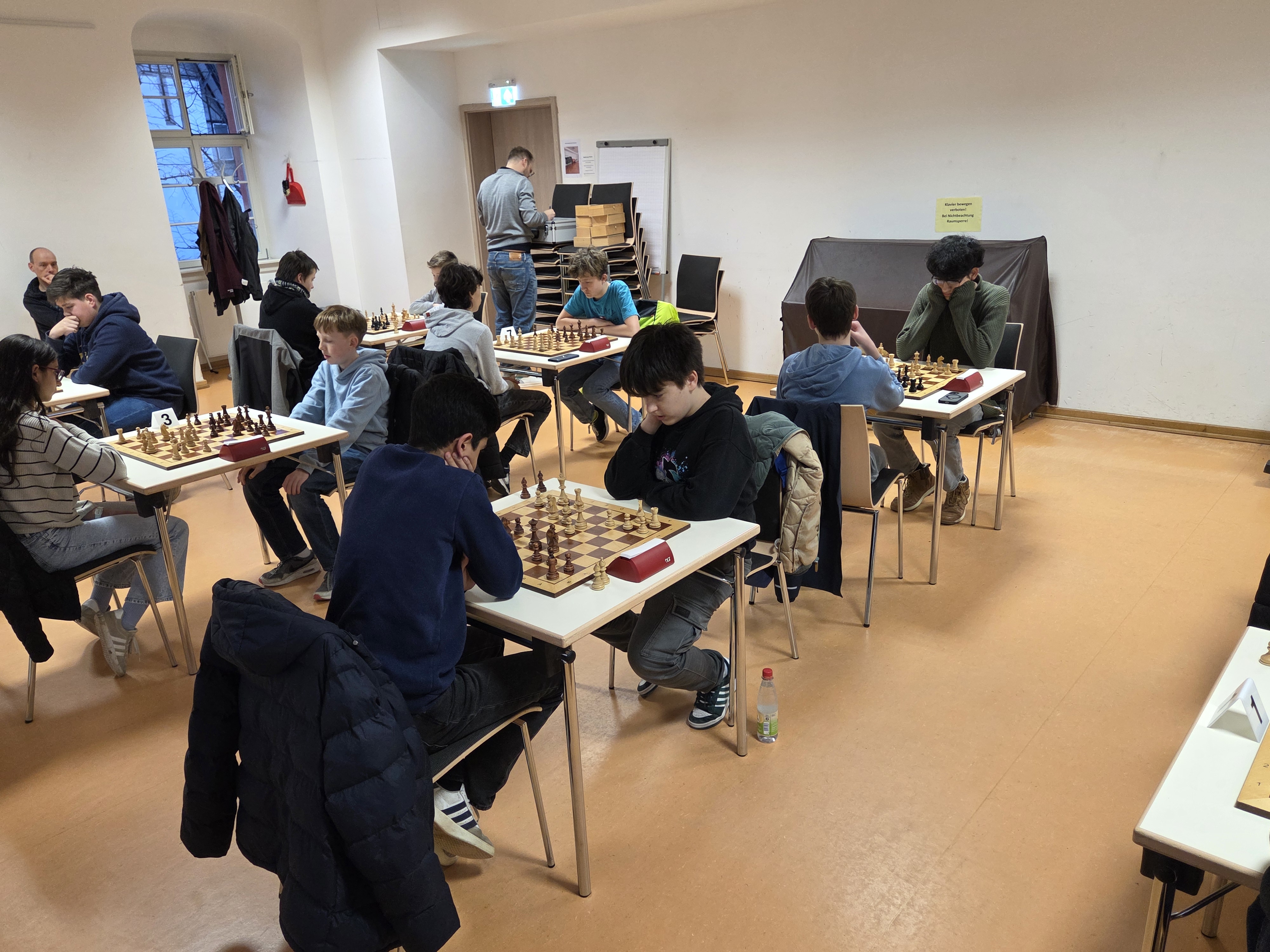 Nachdem sich für die diesjährige MTS-Jugendliga nur Hofheim und Kelkheim gemeldet hatten, gab es heute nur ein großes Finale in Hofheim, bei dem beide Vereine 8 statt 4 Spieler stellten und es wurde auch gleich doppelrundig Schnellschach mit 25 Minuten Bedenkzeit gespielt.